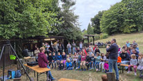Wie schon im letzten Jahr hatte der NABU Donsbach zu seinem Apfel- und Familientag eingeladen. Dafür war bei der Naturstation Talblick groß aufgefahren worden. So hatten die Vorstandsmitglieder