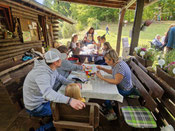 Nach der Wanderung gab es bei der Naturstation Talblick frische Bratwürstchen mit Brötchen. Obwohl das Wetter etwas unbeständig war, konnten doch viele Vögel gehört werden. Jürgen Lauber erläuterte die jeweiligen Vogelstimmen. Er konnte dabei genau mitteilen, ob die Vögel ihre Strophen ganz singen oder nur einen Teil des Gesangs preisgaben. Auch konnte er den Interessierten mitteilen, wann ein Vogel nur einen Ruf von sich gab. Von großem Vorteil ist, dass diese Gegend sehr ruhig ist und von keinem PKW gestört wird. Daher konnten lange zwei Singdrosseln gehört werden, die scheinbar um die Wette sangen. Zu hören waren unter anderem auch der Buchfink, der Zilpzalp, das Rotkehlchen, die Mönchsgrasmücke, die Gartengrasmücke, die Kohlmeise, die Blaumeise, der Waldlaubsänger, der Kolkrabe, der Kleiber und der Grünspecht. Turmfalke, Misteldrossel, Buntspecht, Goldammer, Amsel und Neuntöter konnten daneben noch gesichtet werden. Auch huschten ein Rehbock, ein Reh sowie ein Feldhase an den Wanderern vorbei.