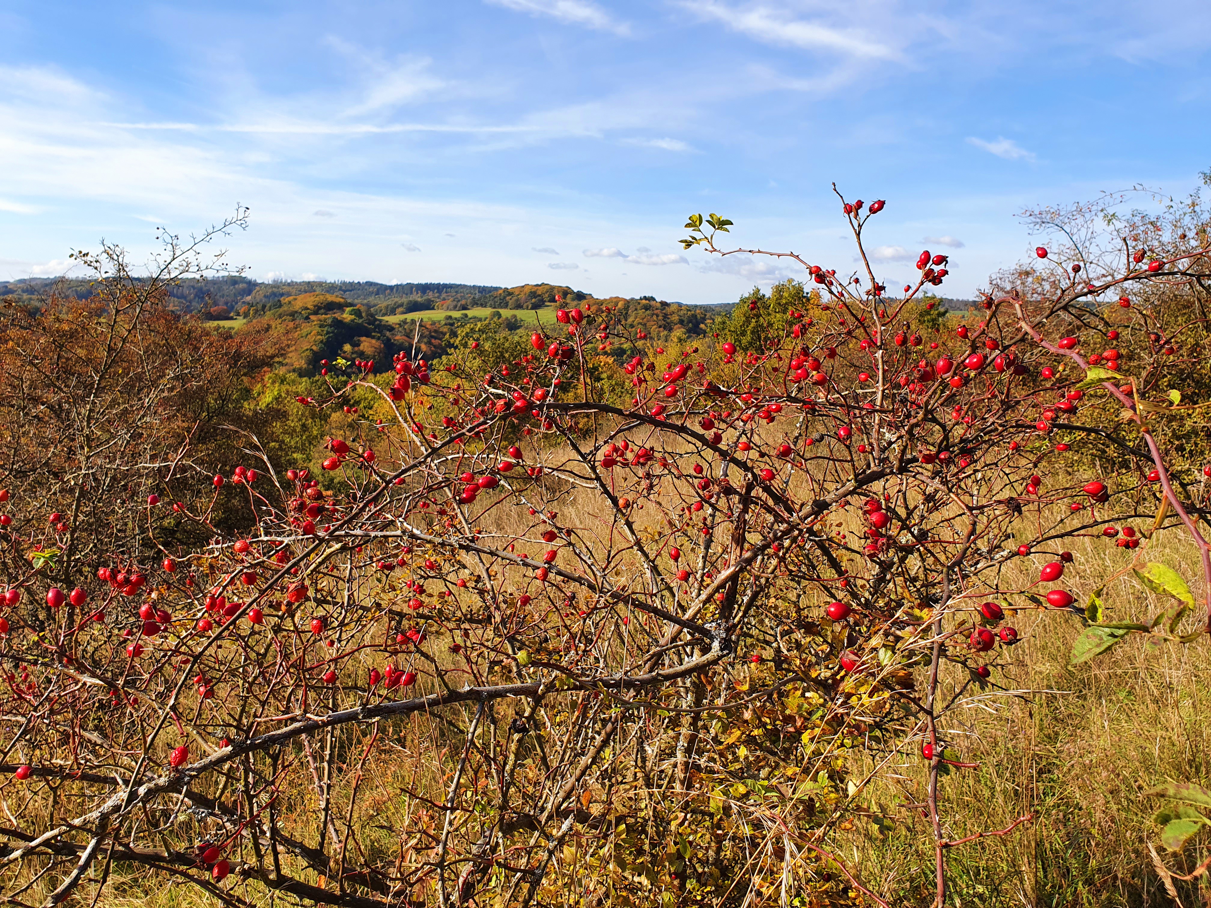 Der NABU Donsbach hatte zu seiner Herbstwanderung eingeladen. Mit dem Thema Sträucher und Hecken führte die Wanderung durch die schöne Donsbacher Gemarkung.